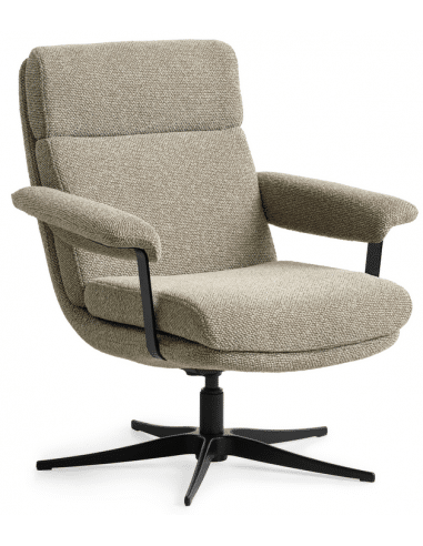 Callum lænestol med vippefunktion og drejefod, fremstillet i et design af sortlakeret stål og beige polyester. Stolen måler 79 cm i højden over ryggen og med siddehøjde på 43 cm.